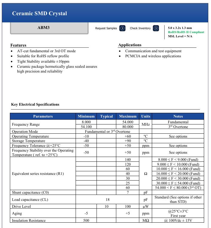 | 晶振規(guī)格參數(shù) | ABM3晶振SMD晶振 |
