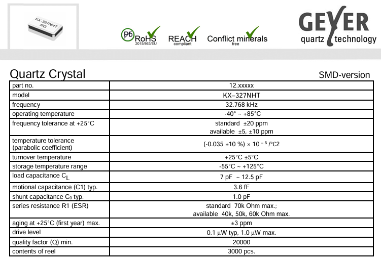 KX-327NHT晶振的卓越,首先體現(xiàn)在其精準(zhǔn)到毫米的技術(shù)參數(shù)上.3.2×1.5×0.75毫米的微型封裝,搭配2焊盤引腳布局,既節(jié)省了電子設(shè)備的內(nèi)部空間,又保證了安裝的穩(wěn)定性,完美適配現(xiàn)代電子設(shè)備小型化的發(fā)展趨勢.32.768KHz石英晶振的固定頻率、12.5PF的電容值與20PP的頻率偏差,讓它能穩(wěn)定產(chǎn)生精準(zhǔn)電振蕩,為設(shè)備運行提供“精準(zhǔn)時鐘”.